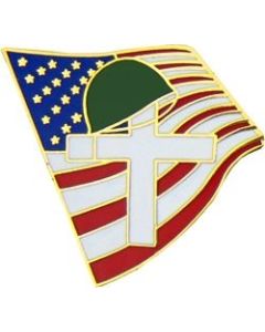 Memorial Cross and US Flag Pin.  Measures 1-1/4 inches.